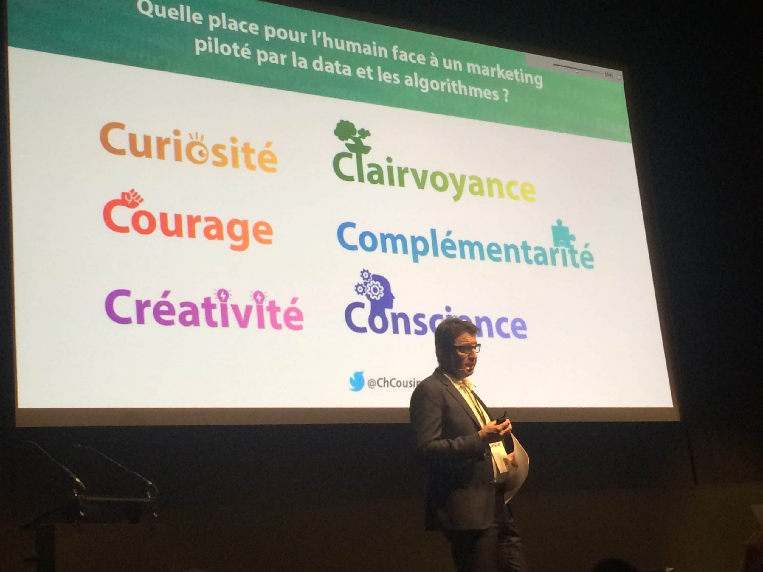Christophe Cousin : Ce que je veux dire est résumé par quatre mots, qui commencent tous par un « c » : le courage, la curiosité, la créativité et la clairvoyance. Pourquoi le courage ? Parce qu’il en faut aujourd’hui pour aller à contre-courant de la pensée dominante, qui tend à vénérer les algorithmes. Cette première affirmation m’amène à développer deux autres notions : la « curiosité » et la « créativité ». En l’occurrence, les algorithmes ne sont ni curieux ni créatifs. Certes, ils ont de la mémoire, mais il ne faut pas confondre la capacité à emmagasiner des données et la curiosité. De même, ils savent bien traiter les données, mais se bornent à exécuter les instructions que les humains leur donnent et ne prennent pas d’initiative : là encore, il ne faut pas confondre la capacité à bien faire ce que l’on vous demande de faire et la créativité. Cela me conduit à la quatrième notion, qui est la « clairvoyance » : à force d’être croisées, recroisées, triturées, les données finissent par ne plus être pertinentes. Il faut que les professionnels du marketing se méfient des données et évitent le syndrome des « femmes enceintes » (ndlr : Christophe Cousin fait là référence au nombre de femmes enceintes recensées en France par un professionnel de la data, qui était de 18 millions, chiffre aberrant cité par Christophe Poupinel, patron d’Ooreka, dans une interview vidéo accordée à La Réclame.